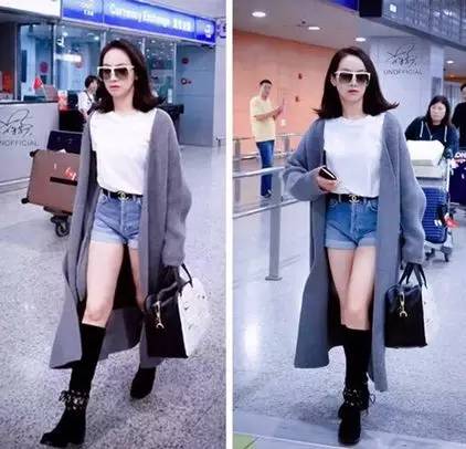 宋茜为了凸显牛仔,特意把卫衣坳成了前短后长的效果,后水台的短靴拉长腿型。这个造型绝对是哈比人的典范▼