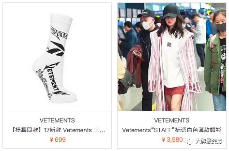 国内第一个把VETEMENTS穿火就是我们的大幂幂了,多次造成疯抢和售罄的情况,换季大作战,我们也选上这个最火潮牌。