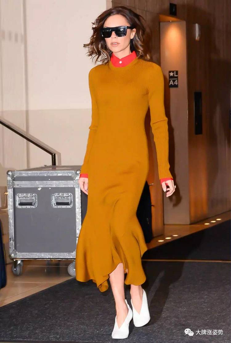 看贝嫂穿了针织连衣裙搭配了v口短靴,性感指数飙升,让人不禁感叹:孩儿他妈身材也太好了!