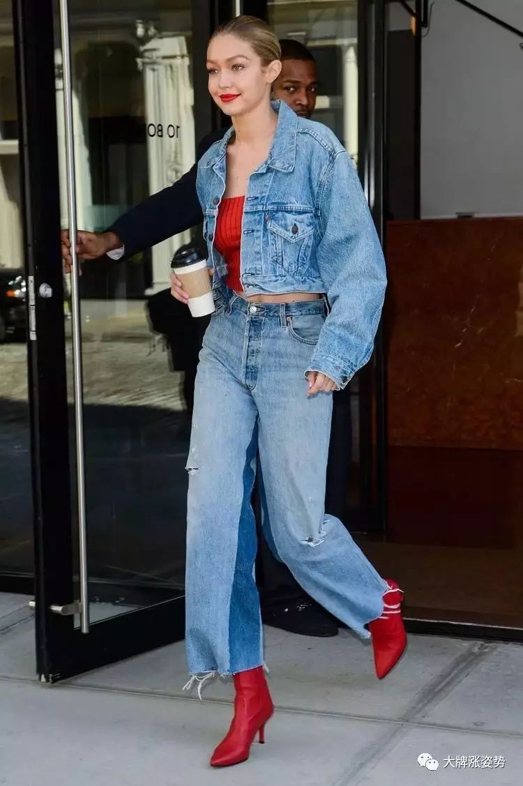 Gigi Hadid就很好的运用了尖头短靴驾驭了时髦阔腿裤,整体气场更强大了!