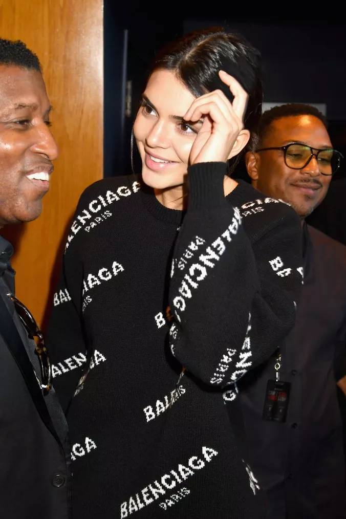 Kendall身穿的巴黎世家oversize圆领毛衣