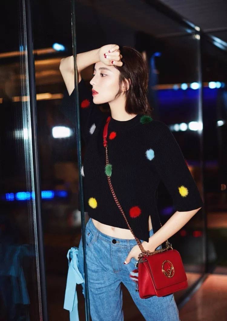 娜扎穿Fendi的毛球毛衣亮相米兰时装周