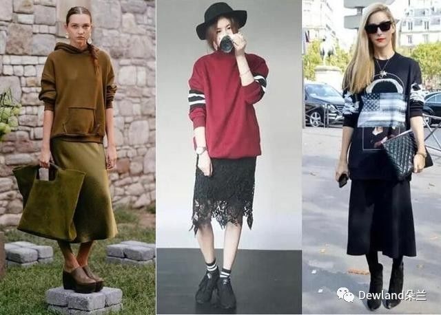 宽松设计的卫衣搭配裙装,格外的青春活泼,减龄的卫衣和女人味的裙装搭配,格外的有韵味。