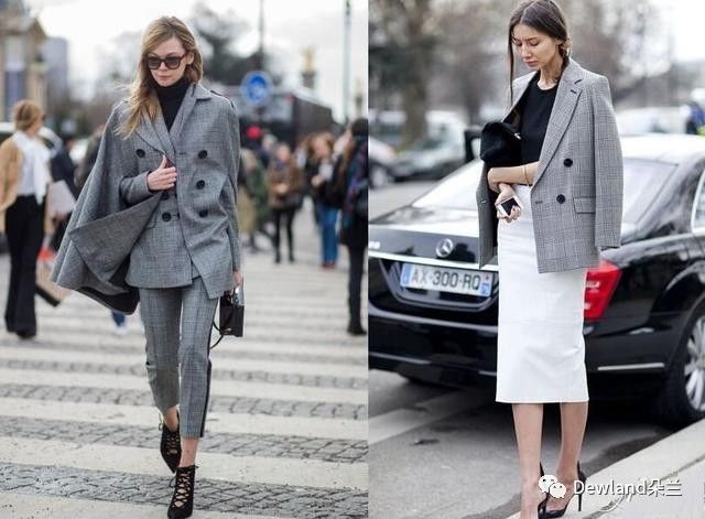 格纹西装:这也是今年很流行的,特别能够彰显女性力量和女性主义魅力的单品,可以搭配牛仔裤,或者选择套装等。