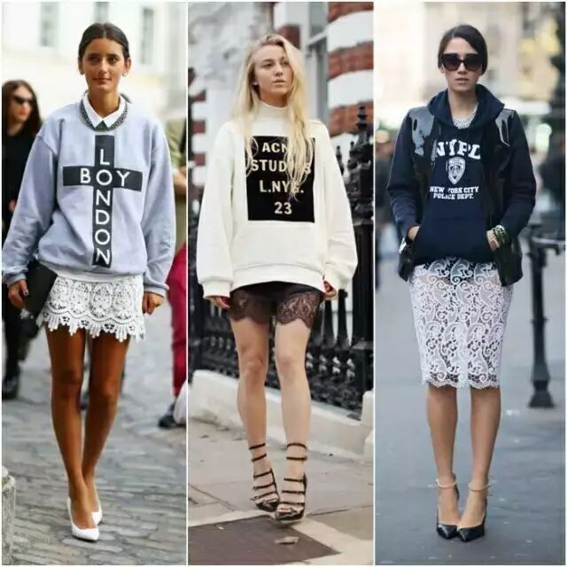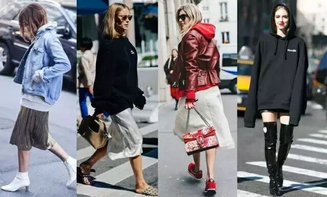 廓形卫衣+裹裙,这种单品相信每个妹纸的衣橱里都有,这个适合混搭的季节可是最好突出各位的逼格哦~