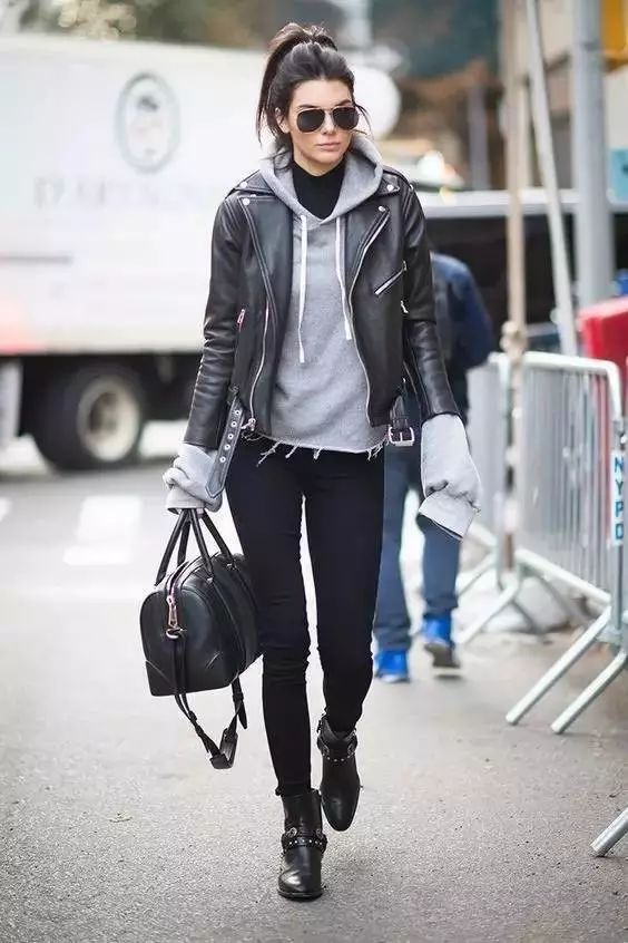 像皮质的夹克,和卫衣能够穿出,让路人侧目的帅气。