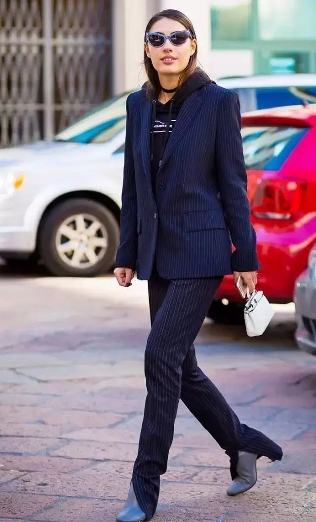 一本正经的干练穿搭,总给人死气沉沉的感觉,而卫衣做内搭加入西服外套中,却充满了雅痞女性精明中不失随遇而安的大气。