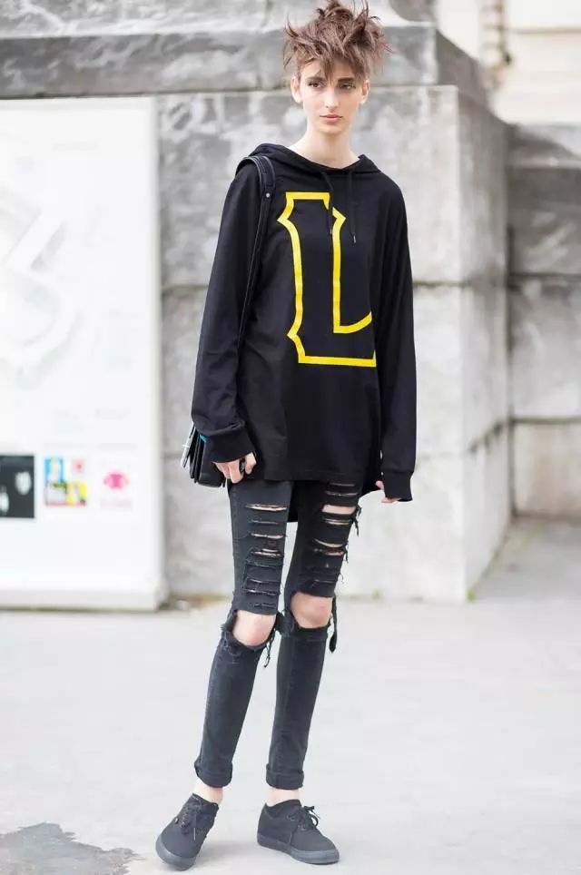 牛仔裤也不要一成不变,破洞的设计帅气加倍。