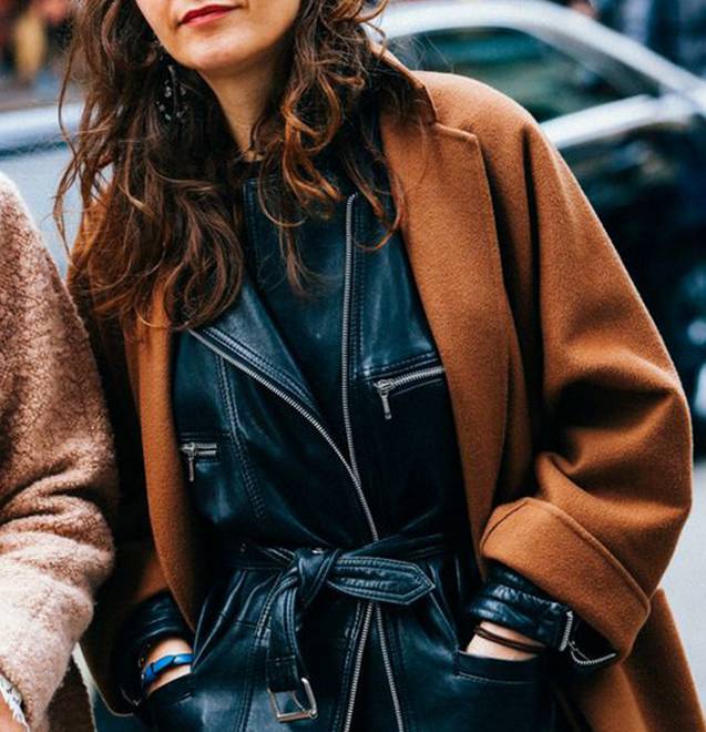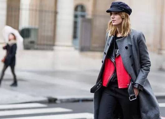 选择两面穿的皮衣也是不错!将鲜艳的那面露外面,最外面再套一件呢子大衣,轻松凹造型。