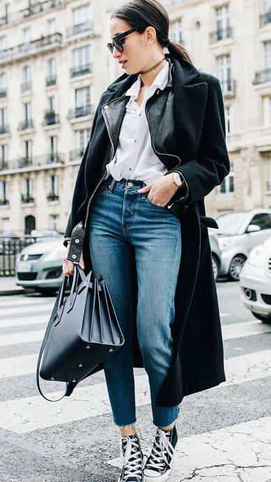 白衬衫搭配黑皮衣似乎太常见了,但是在外面再搭配一件外衣就不一样了。增加了气场的同时,还拉长了整体身形,轻轻松松营造时髦感。