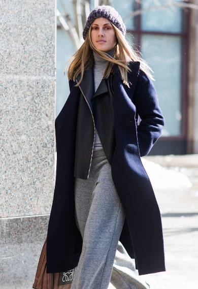 偏运动风也能叠穿!皮衣搭配运动裤有些呆板,在外面套个大外套就好。可运动可休闲,你瞧,这些单品其实你衣橱里都有。