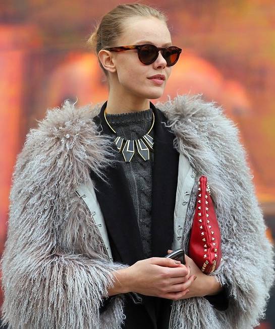 外翻领衬衫搭配小西服,在最外面叠加一件皮草,不仅能在寒冷的冬季为你带去温暖,而且还特别有型。