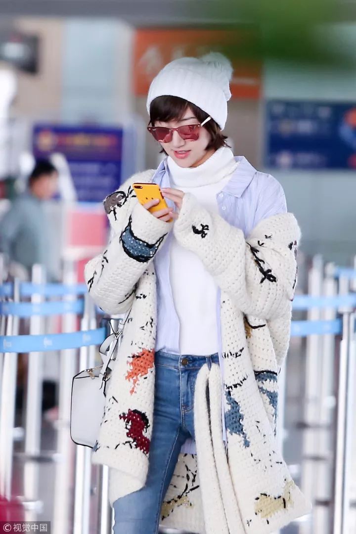 ▲景甜身穿毛衣外套,内搭浅蓝色衬衣和高领毛衣,下身穿紧身水洗牛仔裤,温暖而又浪漫~