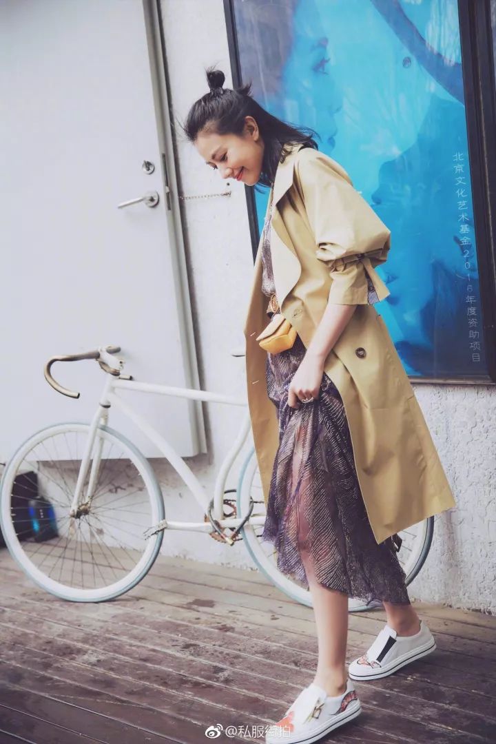 ▲想要凭内搭取胜你还需要一条飘逸动人的连衣裙,高圆圆就选择了碎花的薄纱长裙外搭DO NOT TAG长款风衣,帅气潇洒的风衣搭配连衣长裙,一柔一刚。