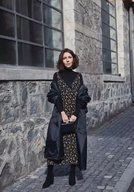 ▲吊带裙真的是件无敌的单品了,从夏季穿到秋季还可以完美进阶到冬季。披上一件大衣是不是又时髦了一大步,内搭一件针织衫或者高领就能完美应付降温了。