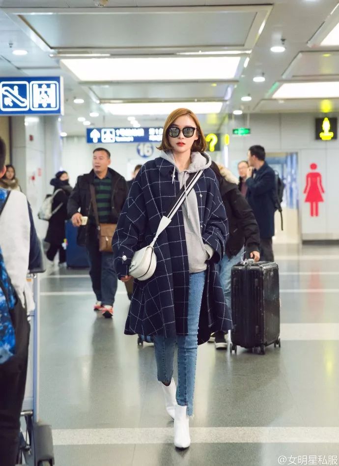 ▲袁姗姗就将AMI灰色卫衣外搭Balenciaga格纹大衣,下穿PEACEBIRD WOMEN牛仔裤,脚踩Balenciaga白色短靴,时尚又减龄!