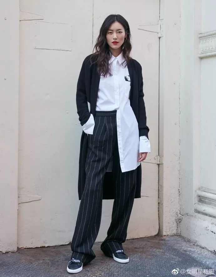 ▲冬季的撞衫几率这么高,再好看的大衣没有一件好看的内搭也白搭。刘雯就选择了Edition10针织大衣内搭Edition10熊猫图饰白衬衫,下穿同品牌条纹阔腿长裤。将衬衫半塞半露,普通的白衬衫也可以不简单,跟着大表姐穿怎么都不会出错。