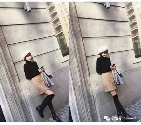 “留白”(也就是露出一点大腿)的效果不仅自然了许多,而且明明是有”留白“看起来腿更长嘛