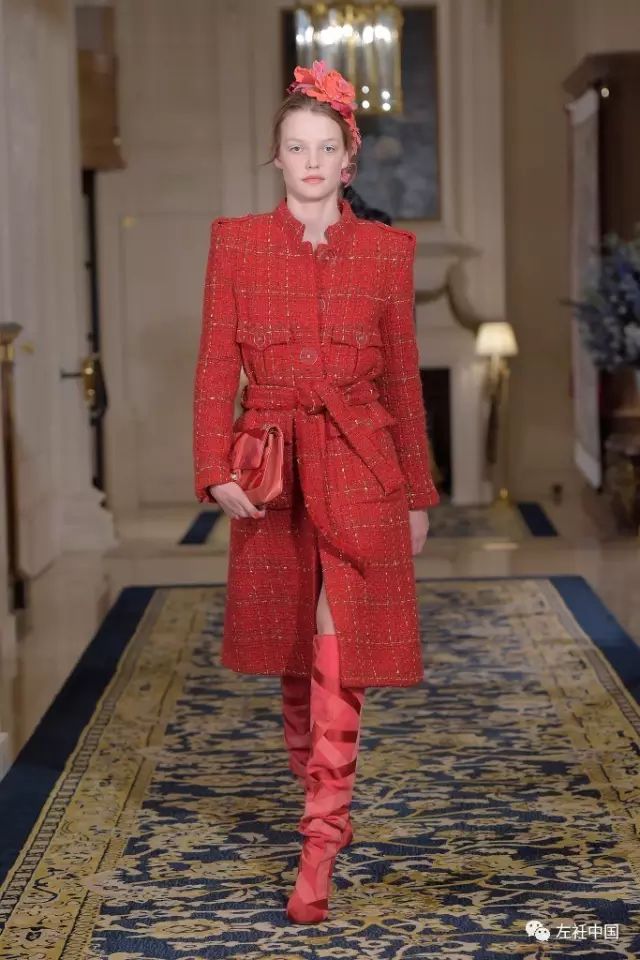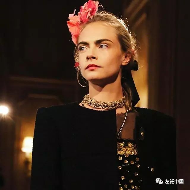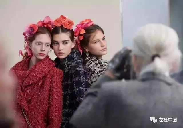 模特们也纷纷别上了贯穿全场的“大红花”...以往标志性的山茶花却不见踪迹。如Karl Lagerfeld所说:“这一季没有山茶花,全部是玫瑰”。