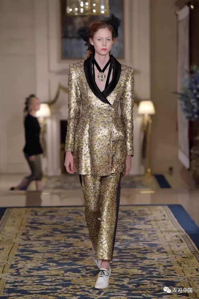 除了复古廓形与细腻技艺,还以灵动的仙裙搭配惹眼的刺绣“土豪金”,装饰繁复所幸又并未显得太“过火”。