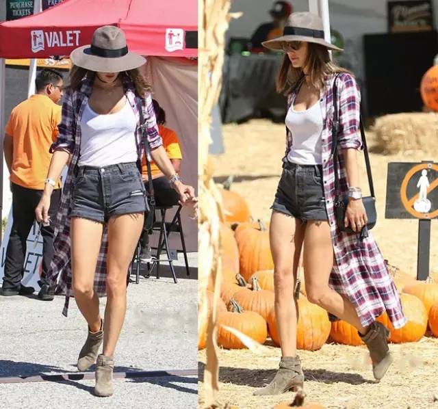 Alessandra Ambrosio 更是将叠穿法发挥到极致,有木有发现她和杨幂都选择用短靴来搭配,嬉皮感十足,加上大大的巴拿马帽还有种西部牛仔的赶脚