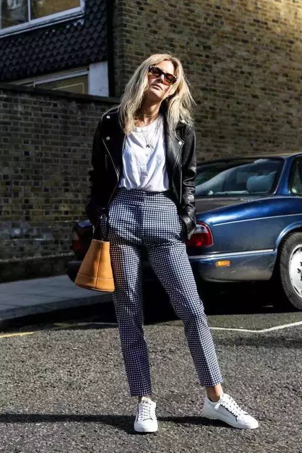 格纹裤装非常的正式,简单交错的图案就能塑造职业感,如果上班不知道怎么穿,入条格纹裤!