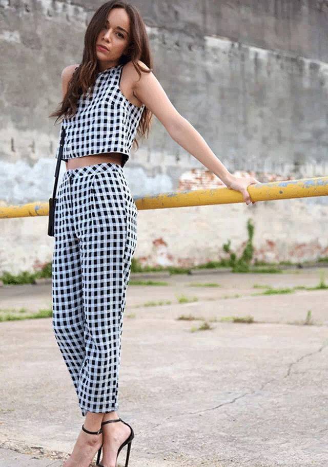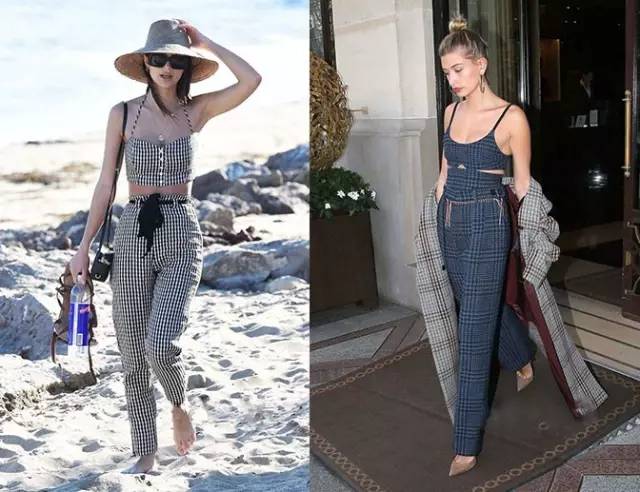 夏日里,最常见的格纹套装就是吊带与裤装的结合,比起单一的上装或格纹下装。套装最突出的优点就是整体性强,从而显高!!
