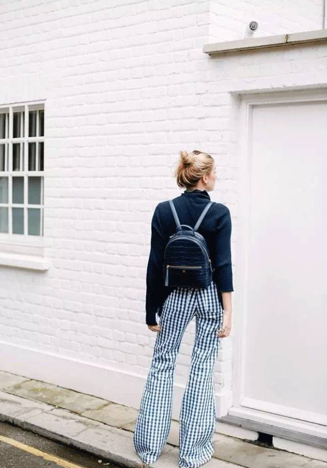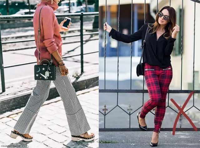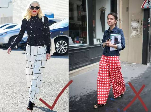 宽松式的格纹裤最好选择格纹面积大的设计,密集、面积小的格纹裤无形中就会给人一种拥挤膨胀感,显胖!显矮!
