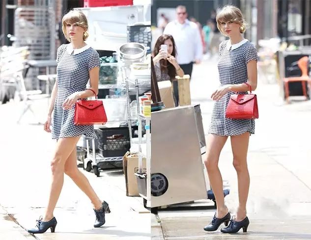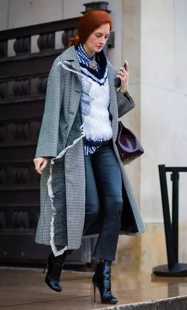 格纹套装穿对了款式气场就上去辣,小面积的格纹更加秀气,还带着一丝小女人的风韵,加上素色高跟鞋典雅十足。