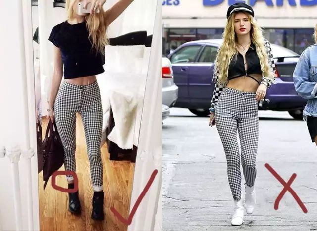 当然每种穿搭都会有对错,紧身格纹裤灰常容易暴露身材短板,如果胯大请向这种黑势力低头,如果只是腿粗,就把裤腿卷起一点,露出一截小腿无形中就能增高2厘米.