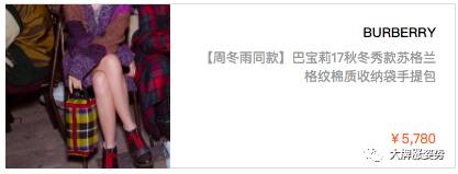 作为特邀嘉宾,第三次看秀的周冬雨在这张秀场照里的格纹包格外抢镜。