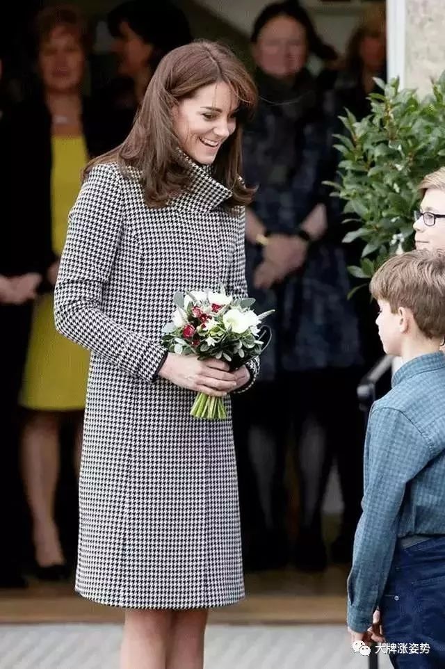 凯特王妃就很爱这种千鸟格的大衣,加上合体的版型,穿出来气质满满。