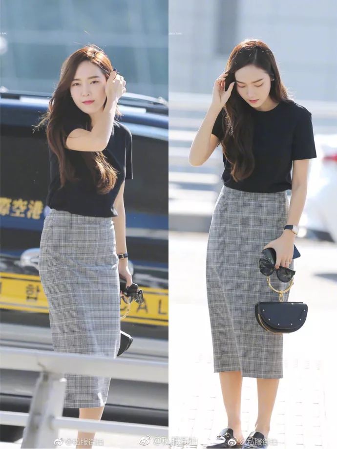 而格纹很适合帅气干练的上班族,即使在正式场合穿也不会很突兀。不对称的格纹半身裙再搭上紧身上衣,气场满满。