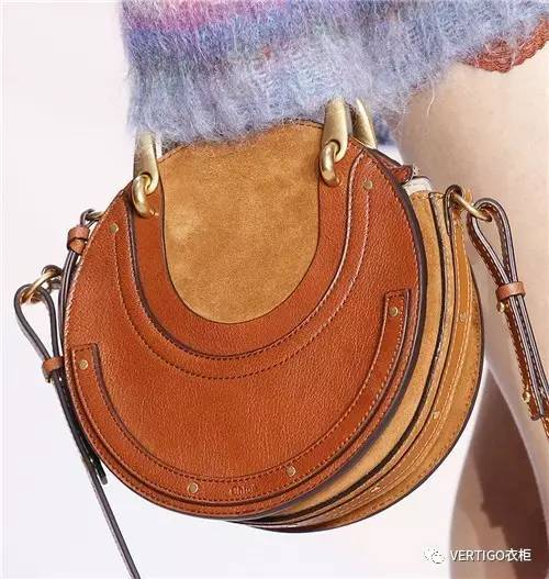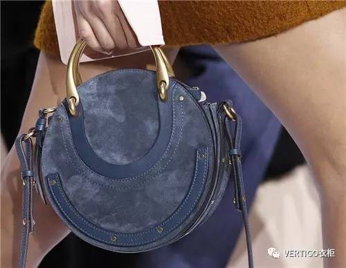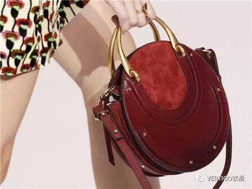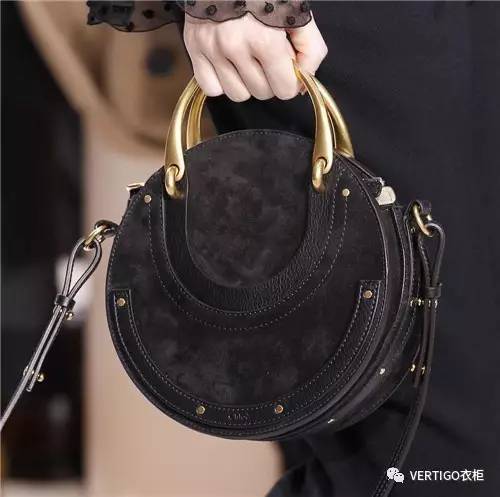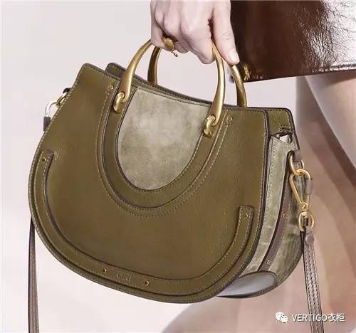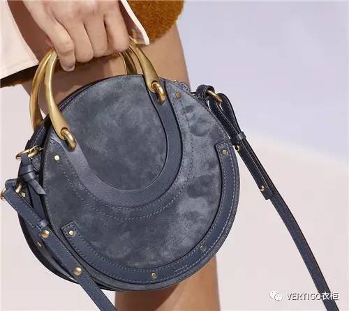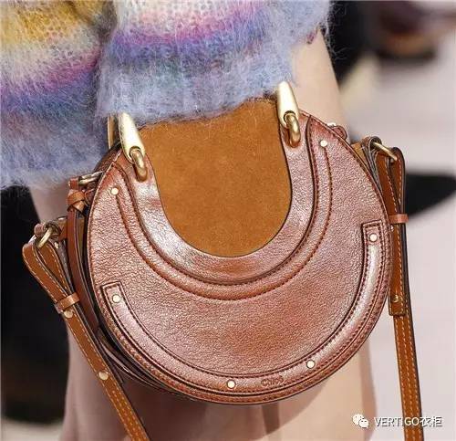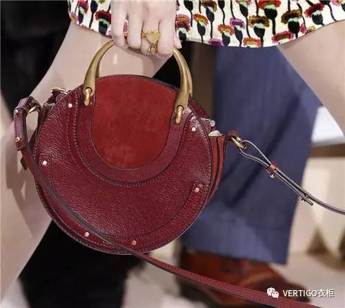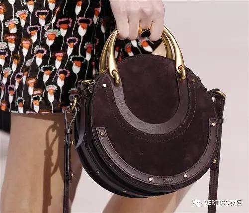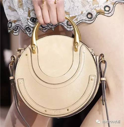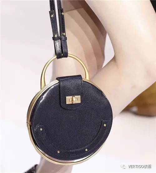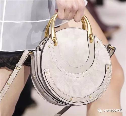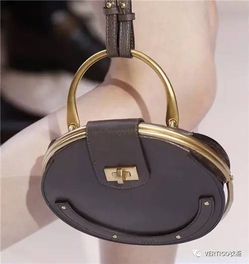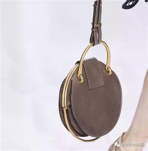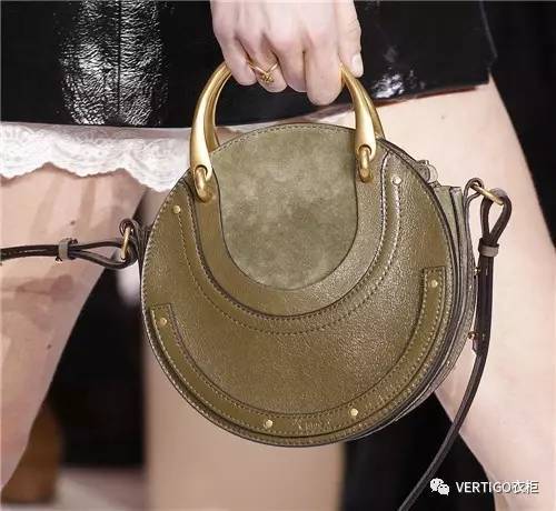 ▼除了可斜背和手携两种用法那款Pixie外,时装show上还有另一版本的Pixie非常吸睛。整个手袋被一个圆形金属圈重重包围,而金属手柄上饰有一幼皮革背带,可供背上膊头用。而天桥上模特儿的示范,把背带绕一圈拿在手上,又是整之有型。
