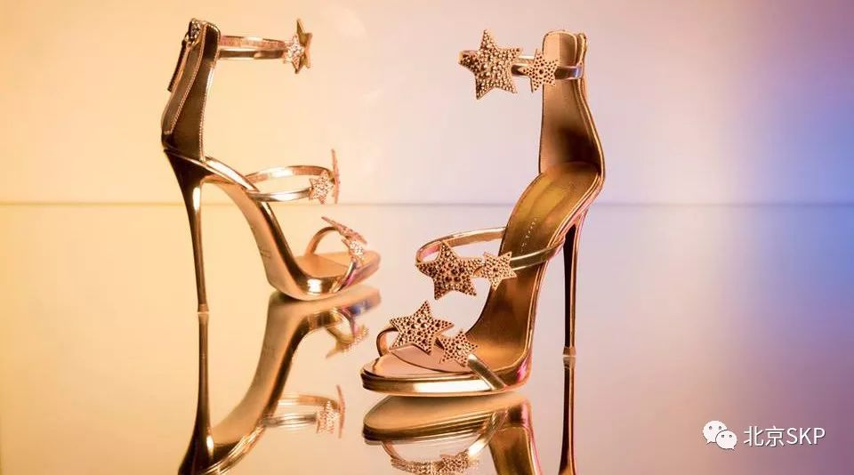 Giuseppe Zanotti 为迎接新一年的来临,推出节日系列 "STARS",片片的星形水晶质感装饰贴花饰于HARMONY的幼搭带上,高贵优雅闪耀,尽得女星们的欢心。