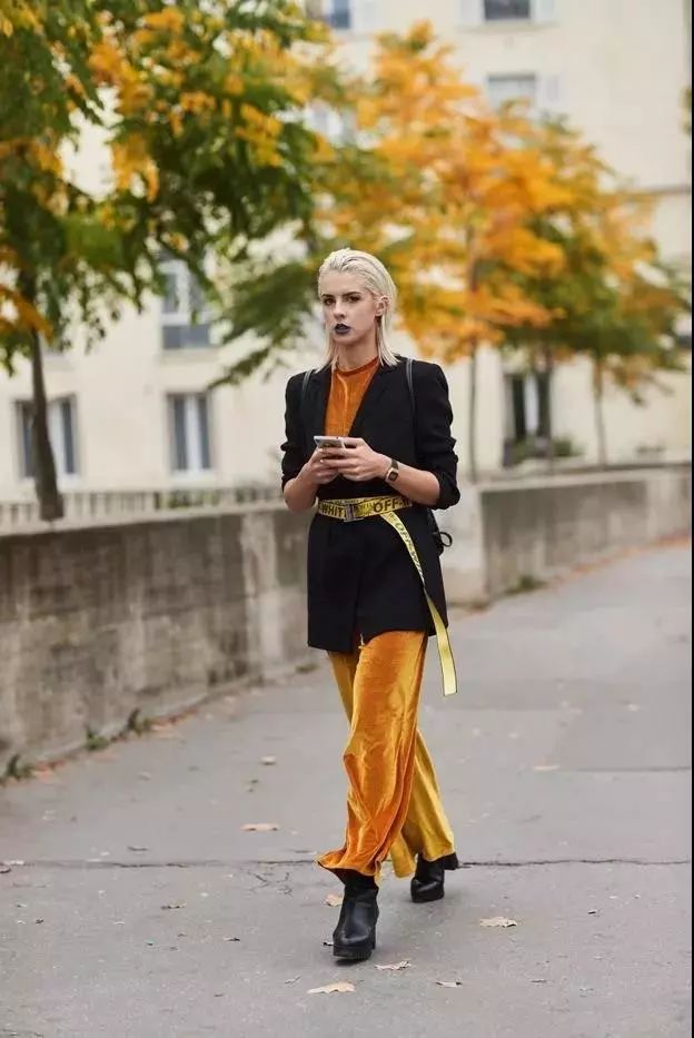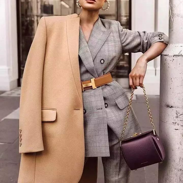 利落感十足的腰带跟西装外套可谓是天生一对,削弱了西装外套的死板印象又给整体look更多的造型感,歌天使真的超爱这种搭配