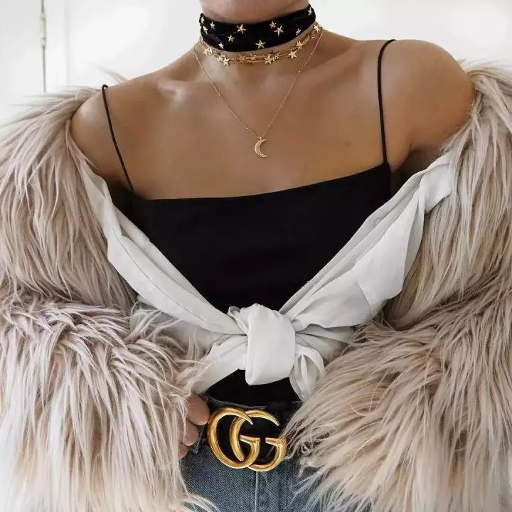 有点膨胀感和体积感的单品比如大毛衣、毛毛马甲,还有羽绒服,都可以扎上腰带,反正别人看不出你真实腰线,所以怎么扎全看你,腰带在哪,腰就长在哪