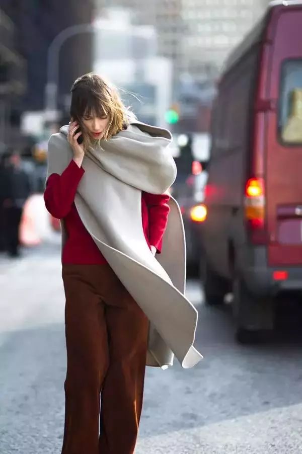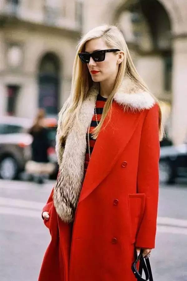 一件大红色外套,在寒冷的冬季不仅时髦还喜庆。