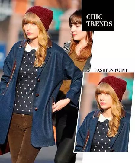 戴上红色针织帽的霉霉瞬间减龄十岁,青春无敌。