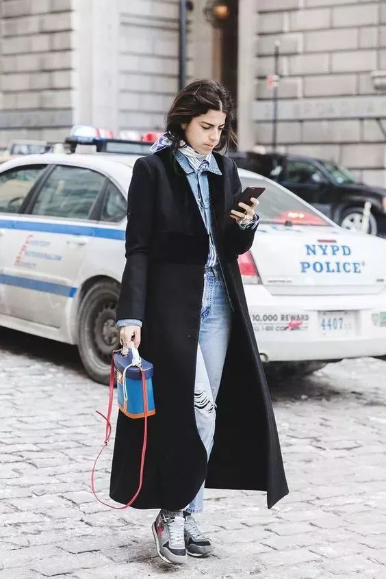 内搭一身牛仔混入了更强的街头属性,配上黑色大衣和运动鞋,也能穿出休闲的酷感。