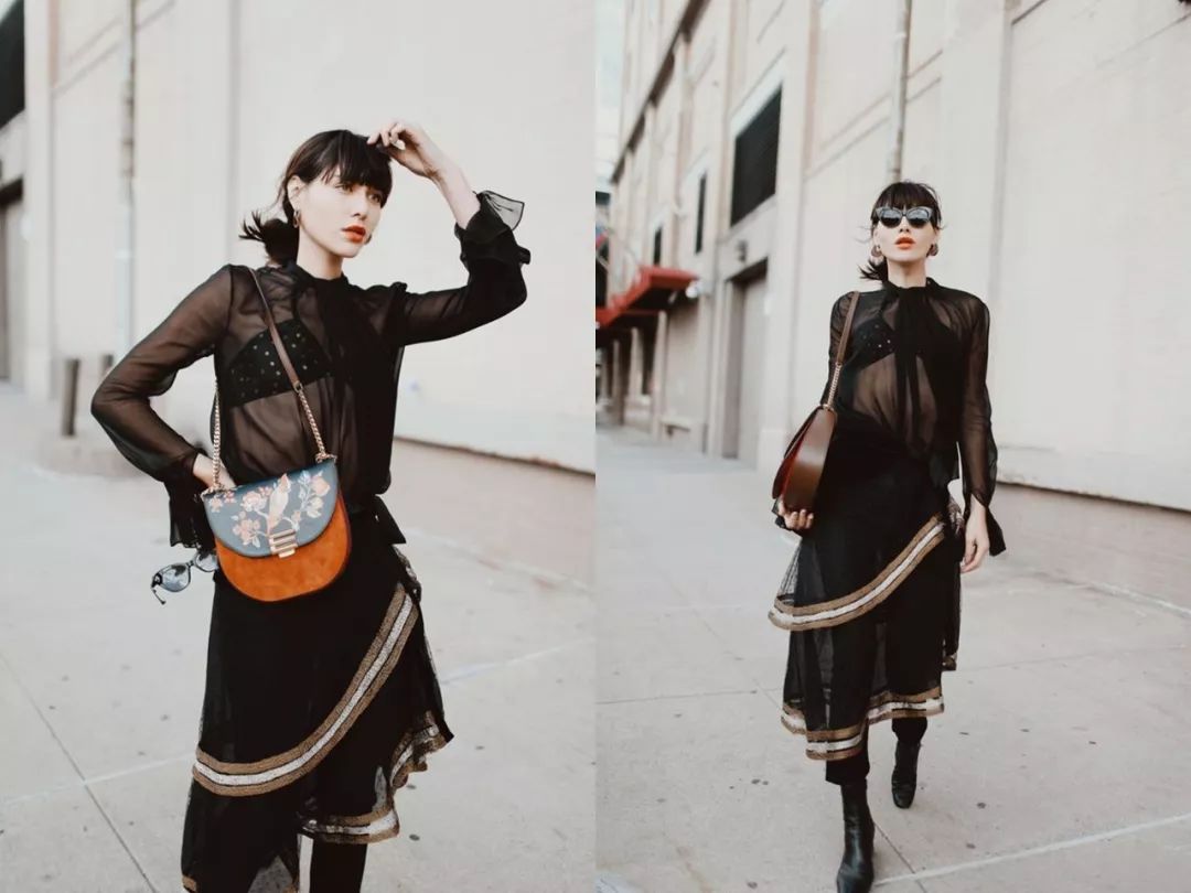 小黑鞋还有一个F君本人很喜欢的特点,就是当穿女人味十足的单品时,搭配小黑鞋会更加优雅▼