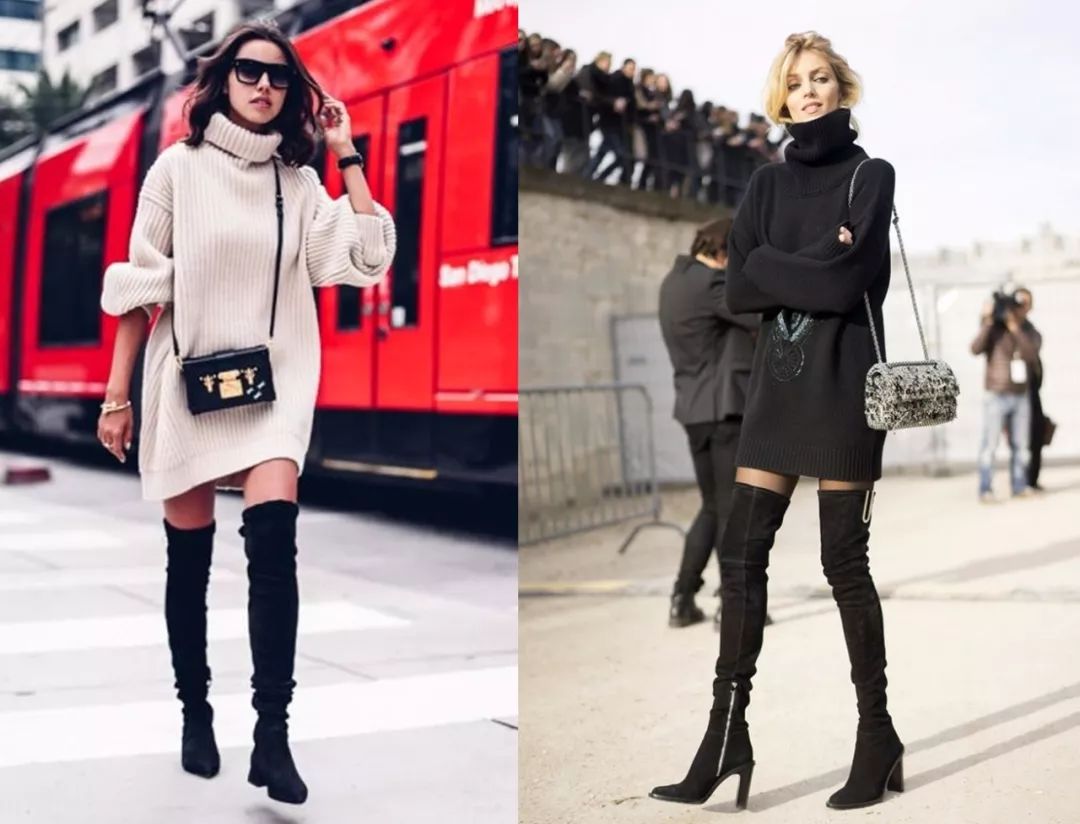 一双过膝长靴和oversized高领毛衣打造下半身消失,休闲不失女人味▼