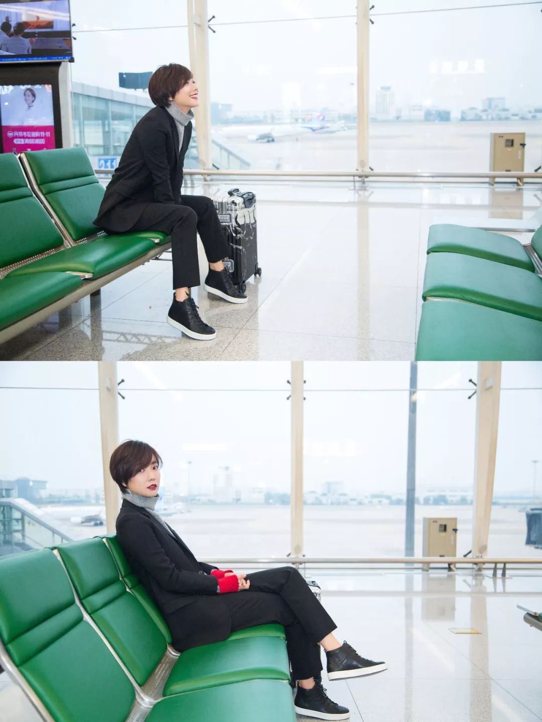 江一燕的西装造型也是穿着ECCO Soft 8的小黑鞋,舒适的同时增添了整体的黑色调,再用红色眼镜作为亮点,酷酷的~▼