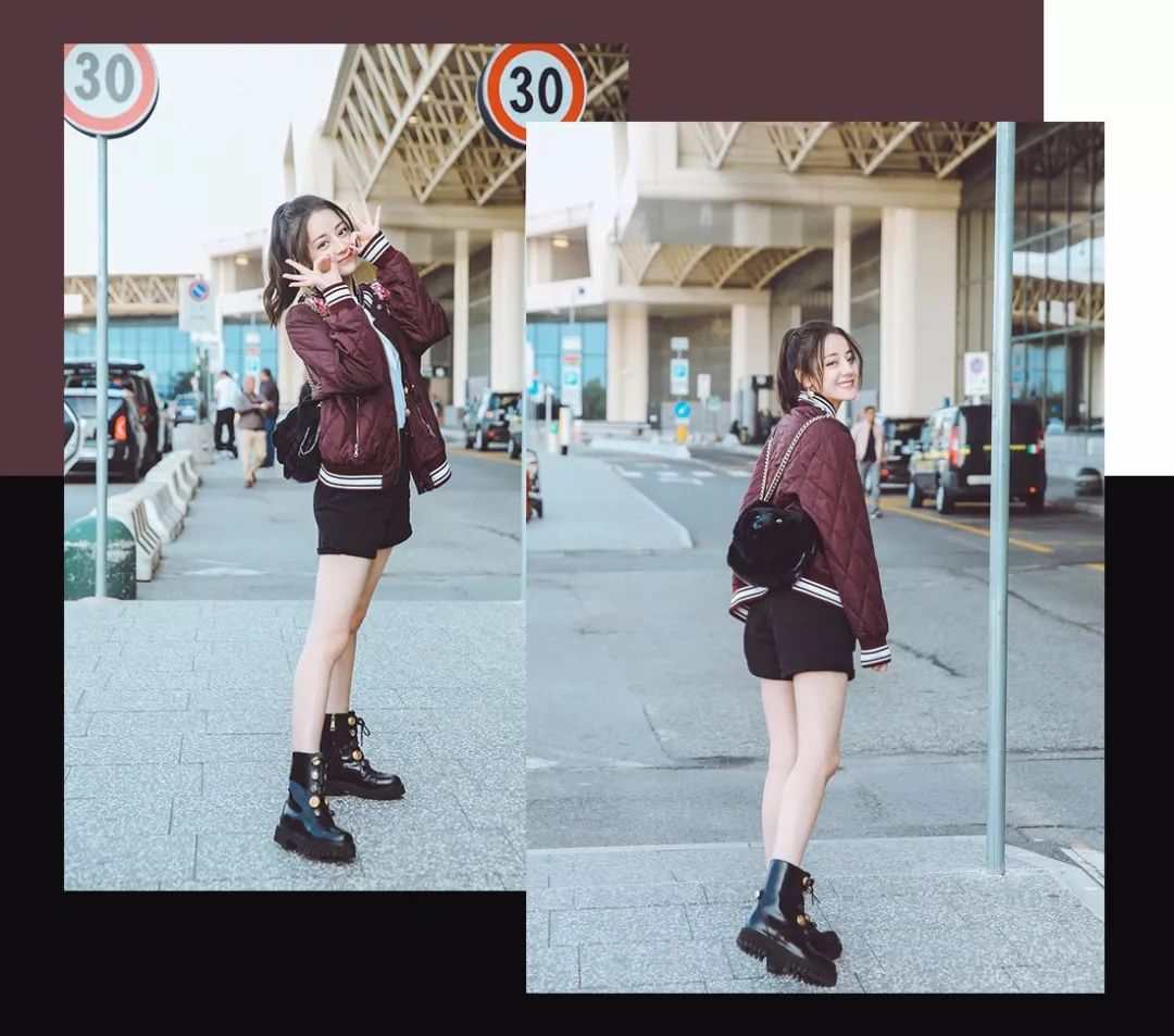 迪丽热巴这身look中,棒球服和马丁靴都是比较中性的单品,梳起高高的马尾整个人就活泼了许多!腿真的好长...我不羡慕(微笑)▼