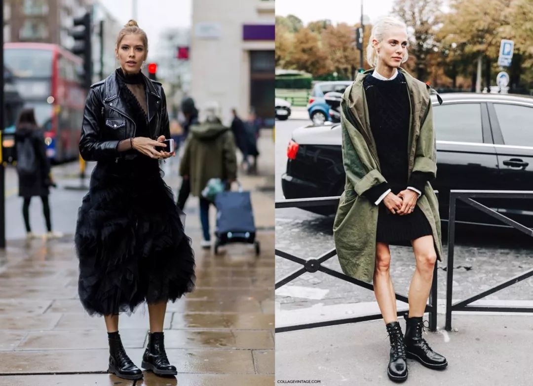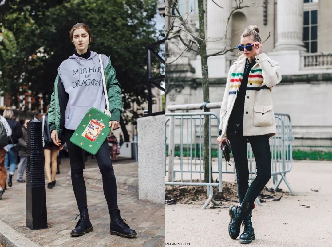 马丁靴可以很好塑造中性街头感,但它也能和女性化单品很好的mix。现在大热的Femleisure风格就可以用马丁靴和裙装搭配出来▼