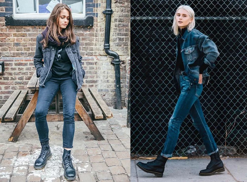黑色马丁靴和同样街头味十足的牛仔单品可以轻易的演绎率性的朋克风,酷酷女孩就是你本人~▼