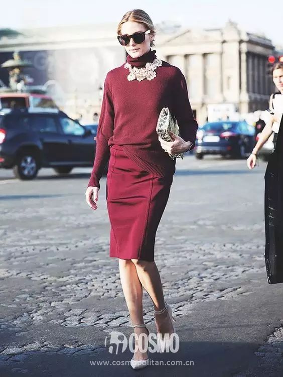 酒红色真的是岛屿很爱的颜色之一,比起大红色来讲,酒红色来的更加有质感,在秋冬这个季节中能瞬间提亮你的肤色,也让你的搭配显得不单调。