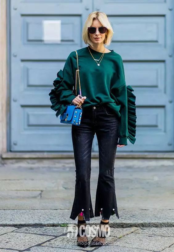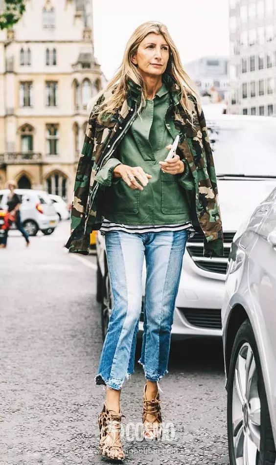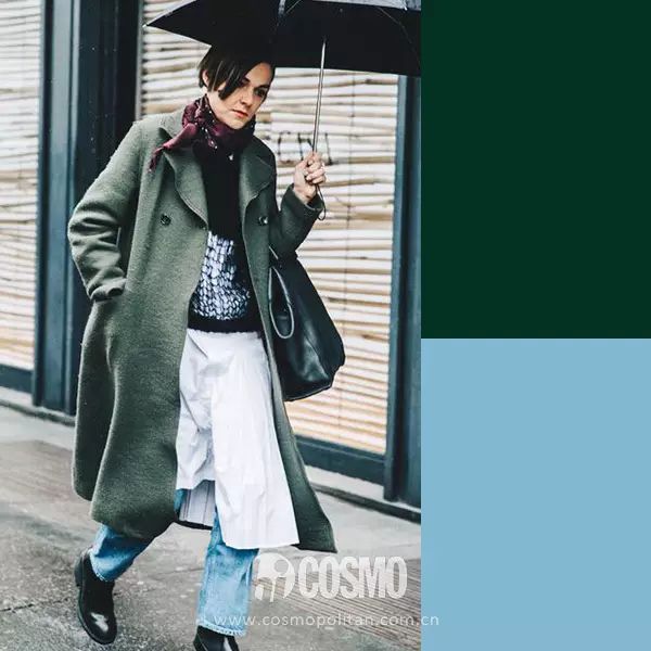 这里说的蓝指的比较多的是牛仔蓝,橄榄绿和牛仔蓝搭配在一起的感觉休闲随意,不刻意的时髦。