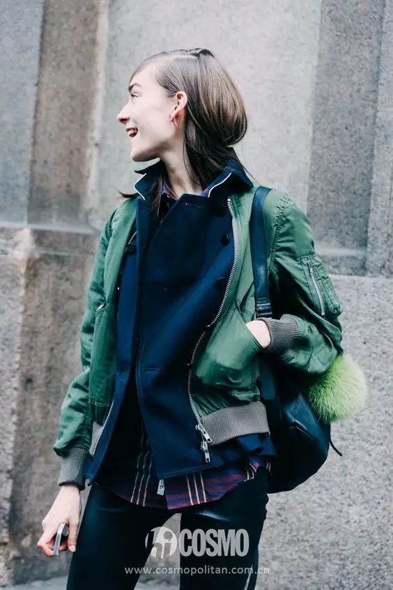这就算是同色系穿搭了,橄榄绿和更深的墨绿,可以很舒服的搭配在一起,这种同色系其实非常有层次感。