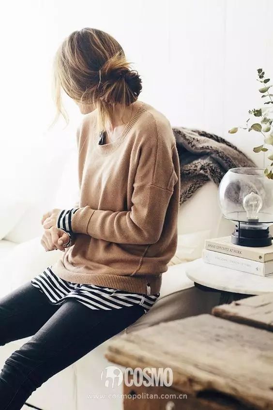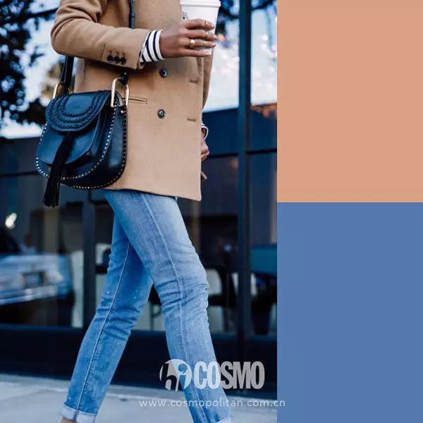 比较小清新偏复古的颜色,驼色很好的中和了牛仔蓝的男孩子气,这两种颜色搭配起来瞬间温柔不少。